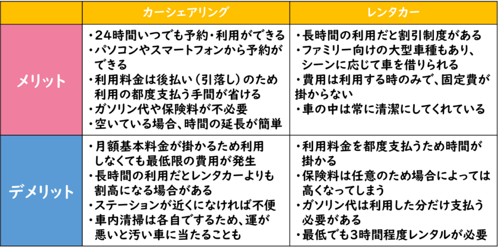 レンタカーとの違いについて解説します